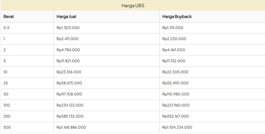 Daftar Harga Emas UBS 15 Oktober 2025: