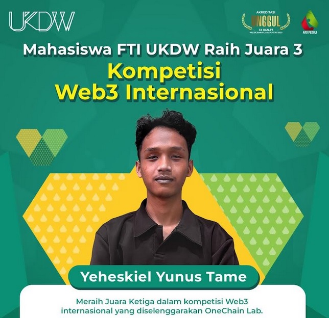 JOGJA—Dunia teknologi kembali menyoroti inovasi anak bangsa. OneTrianggle, sebuah protokol zero-loss gamified savings yang dikembangkan oleh Yeheskiel Yunus Tame, mahasiswa Program Studi Informatika Universitas Kristen Duta Wacana (UKDW), berhasil meraih Juara Ketiga dalam sebuah kompetisi Web3 internasional dan membawa pulang hadiah sebesar US$1.000.